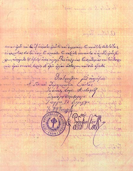 της Μητροπόλεως Ροδοπόλεως, για την ανέγερση Μητροπόλεως και ενός αρρεναγωγείου